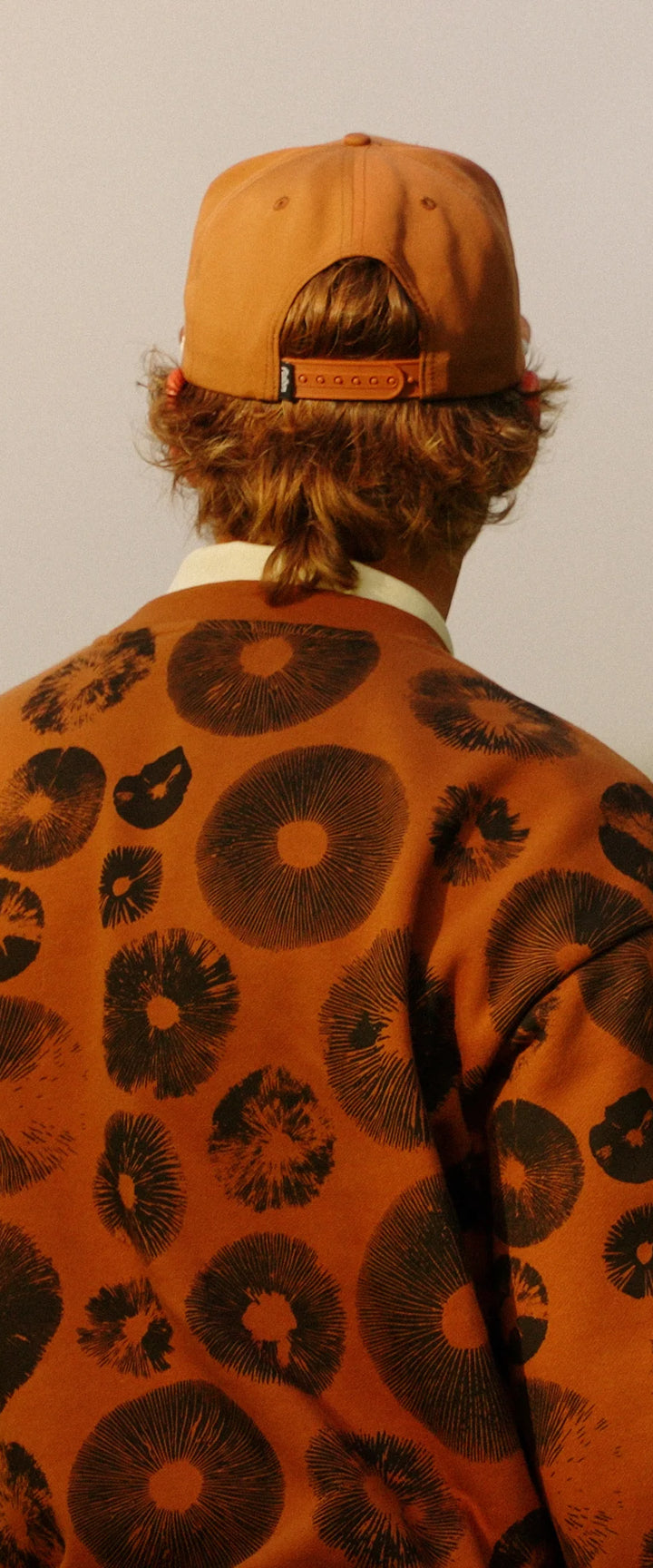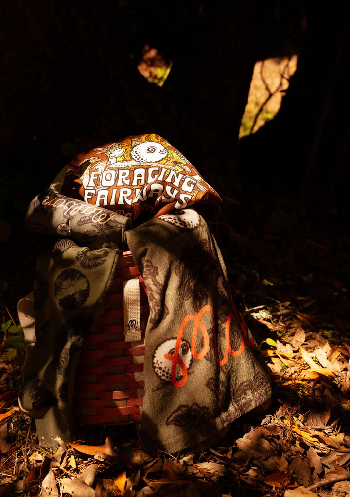 Rooted in Stephen Malbon's passion for foraging, this collection plays on the idea of the search. Textures and graphics carry the theme throughout—from spores spread in basket-weave patterns and chanterelle artwork to poison oak-printed accessories.