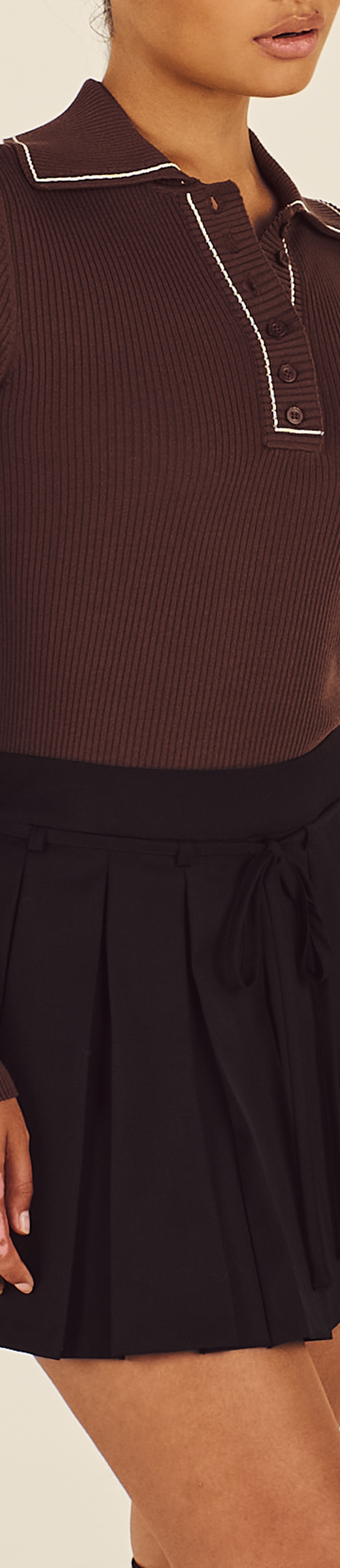 - Contrast stripe on collar and cuffs