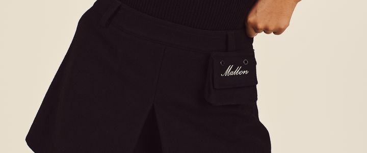 - Embroidered M script logo on left chest
