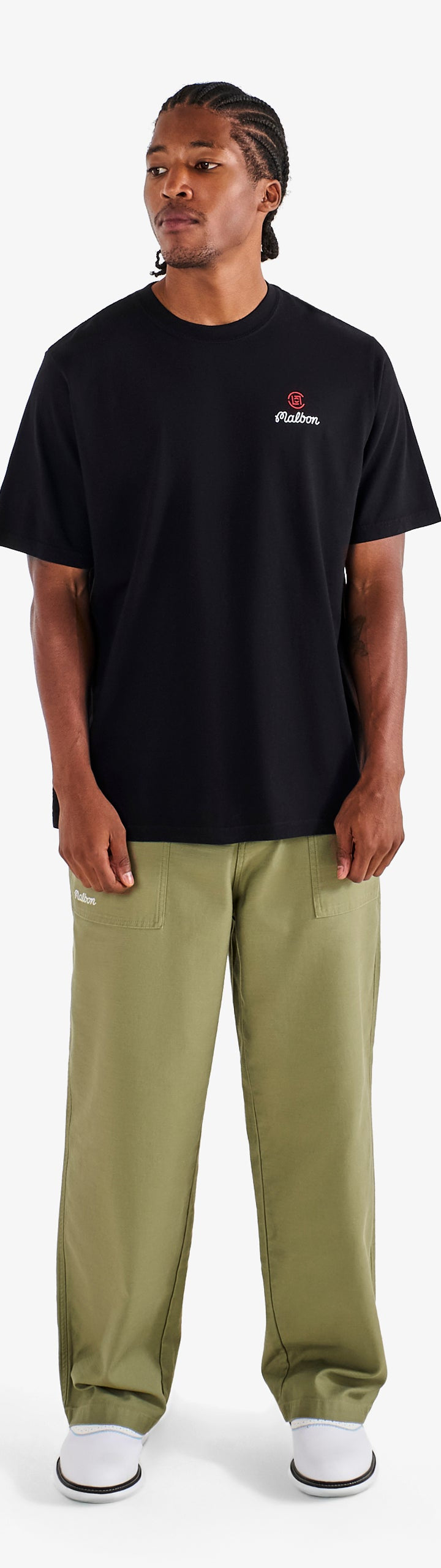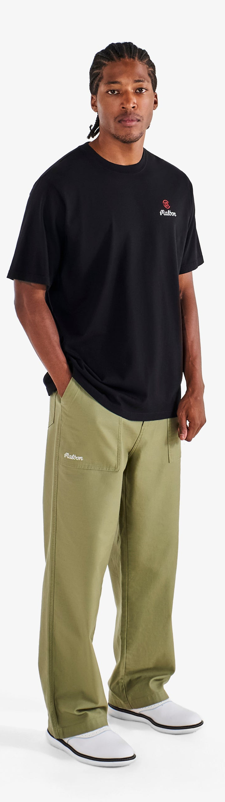 - Printed Malbon script and CLOT logos on left chest