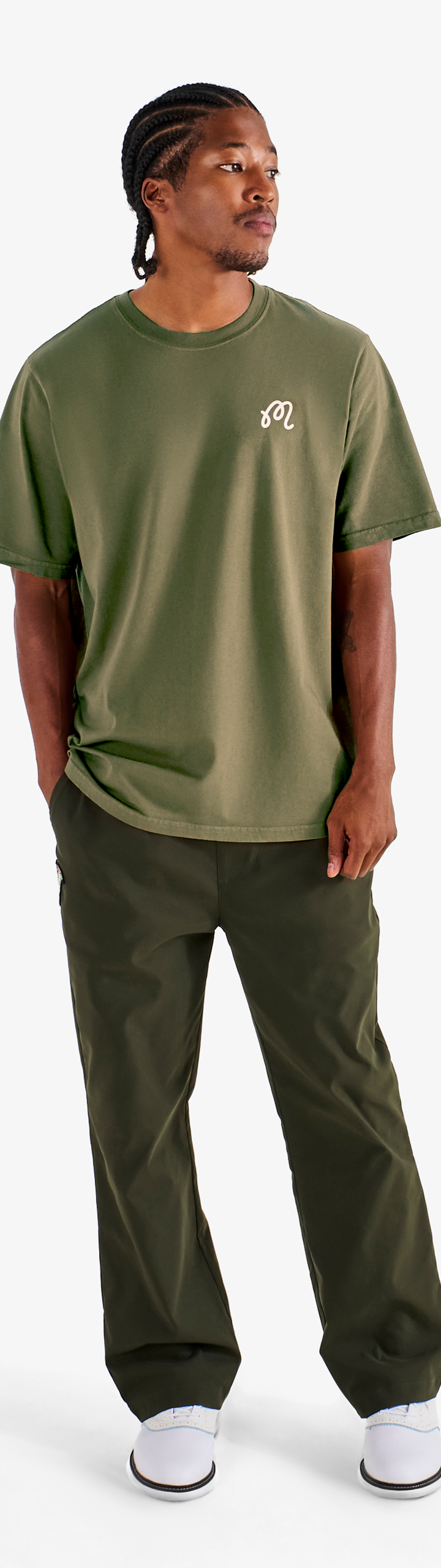 A classic, flipped. This tee’s your everyday go-to, a leveled-up essential made to move easy. Soft premium cotton, relaxed fit, and made in the USA—it’s built for whatever the day throws at you, from course to coast.