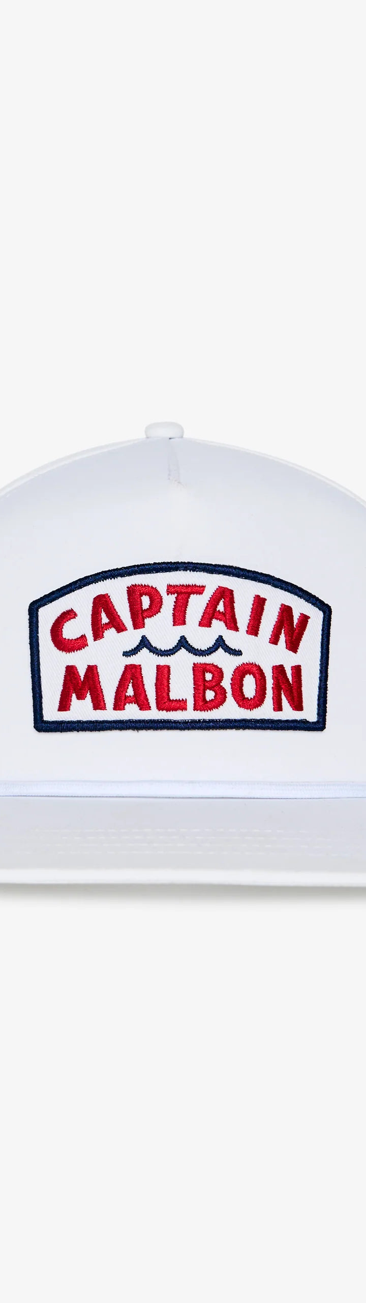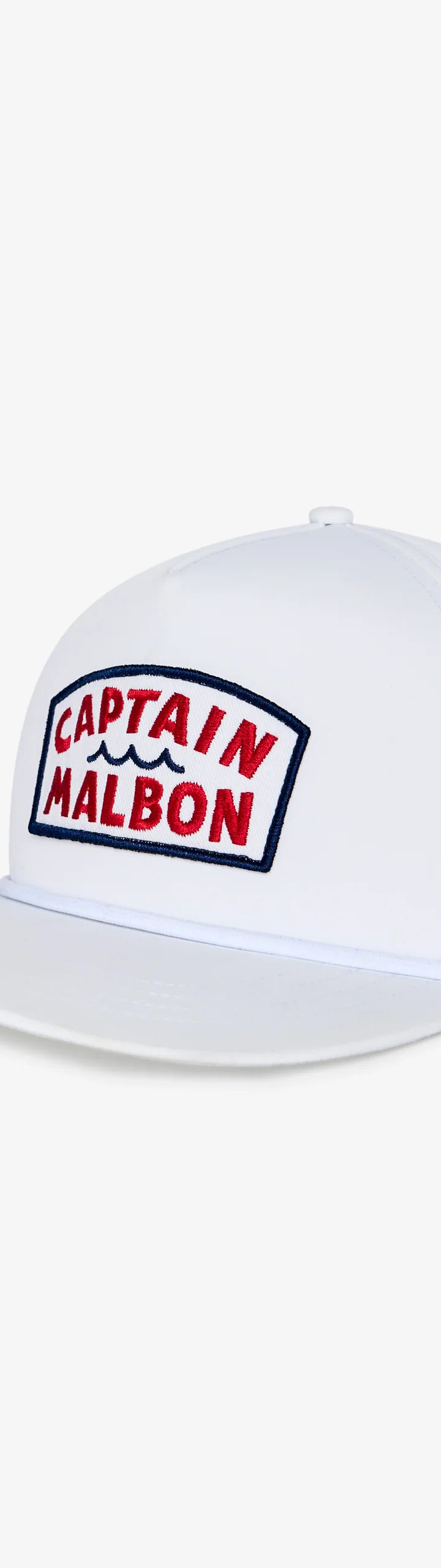 Constructed with a classic five panel design, this nylon rope snapback hat features an embroidered patch from our Captain Malbon collection. It's the final touch for sun protection on and off the greens.