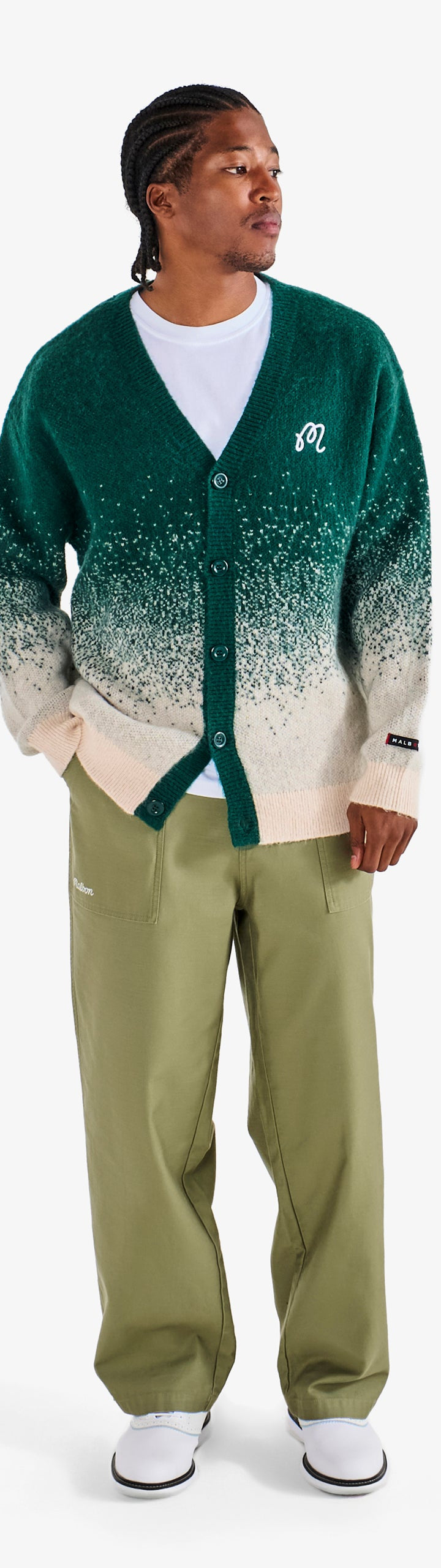 A highlight from our collection with CLOT, this relaxed knit features a bold, gradient colorway throughout. Cut with classic ribbing along the trim, it's a casual cardigan that styles up a crisp white tee. Open or closed, wear it however you want.