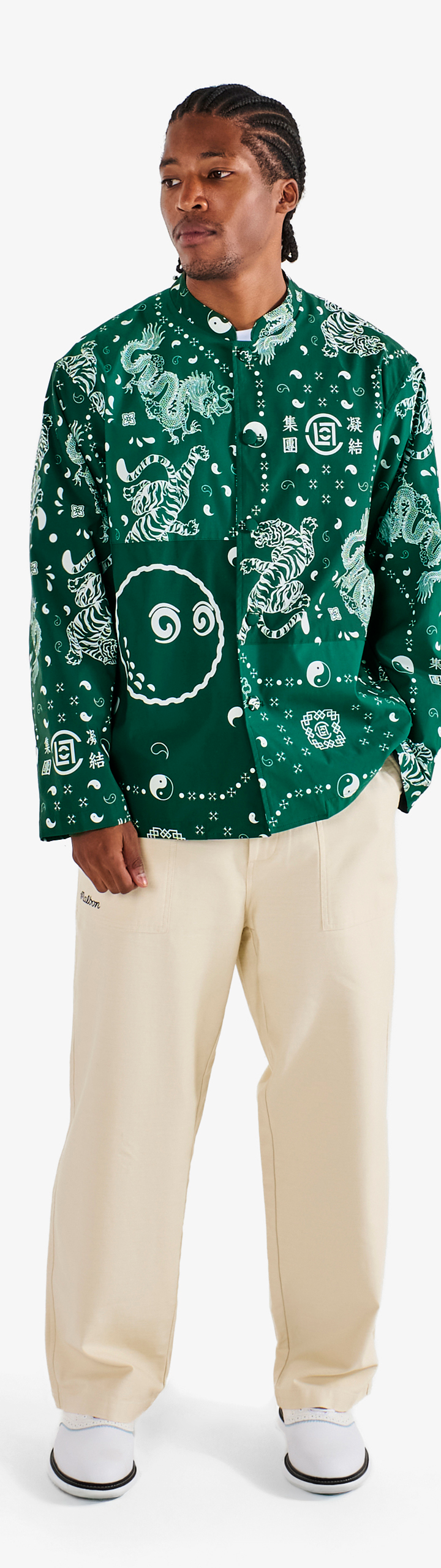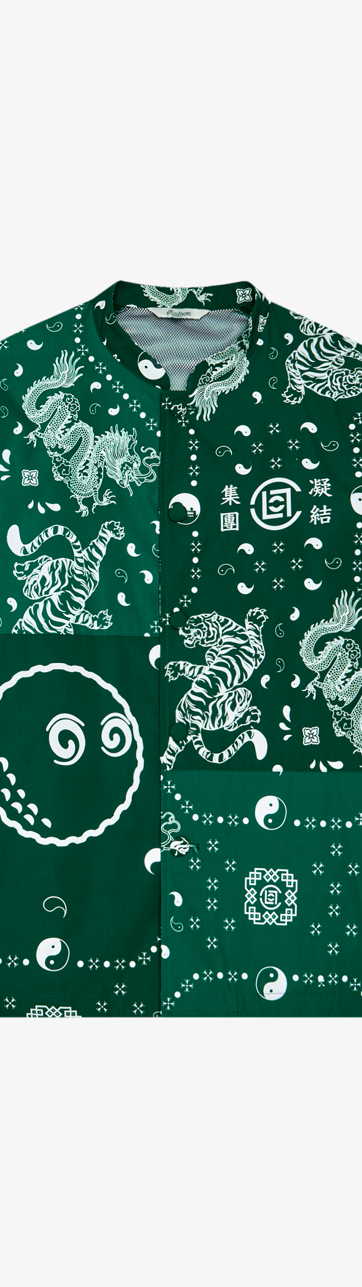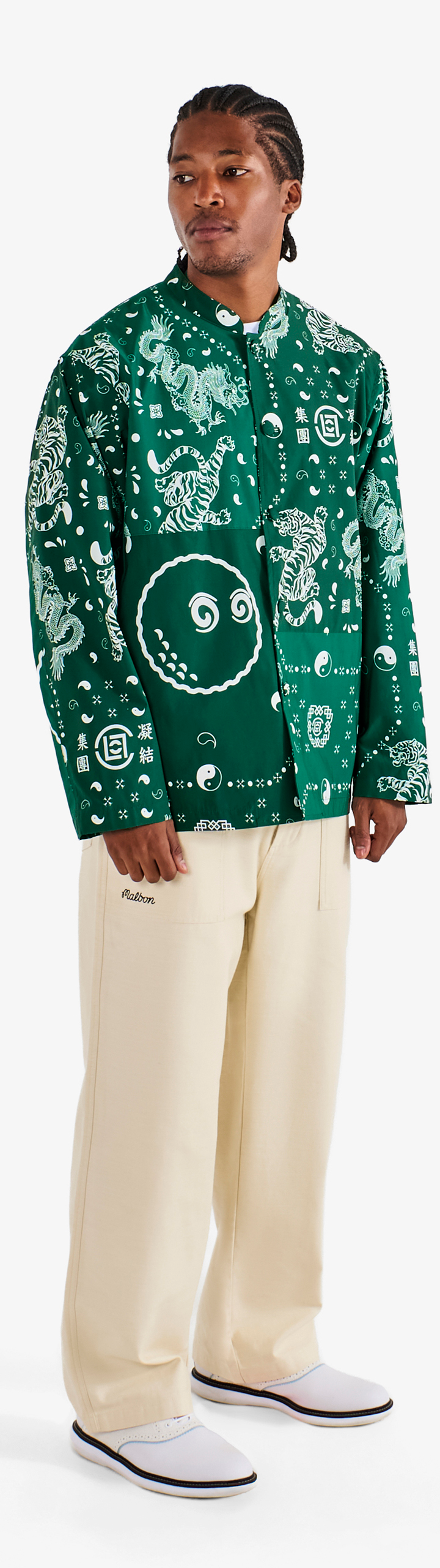 Bold in design and rich in detail, our CLOT Patchwork Jacket is made from 100% cotton with an all-over patchwork construction that brings both brands’ identities to life. Featuring fabric-covered buttons, a short mandarin-style collar, and CLOT and Buckets logos, this jacket is a statement embodying cultural storytelling and superior craftsmanship.