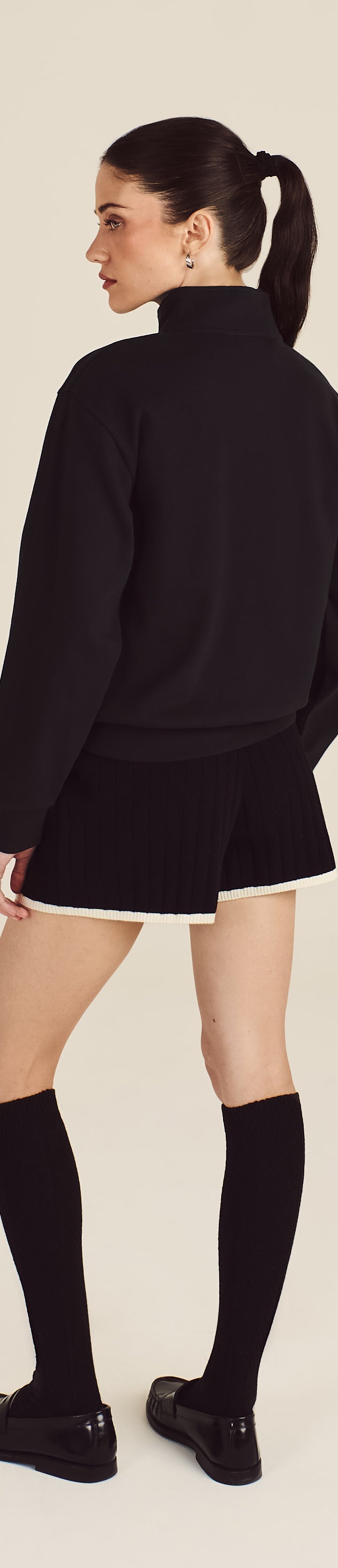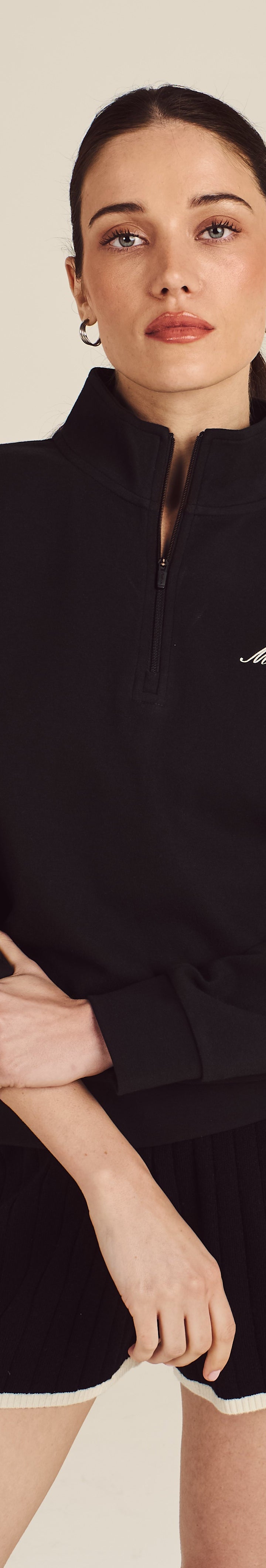 Made from cotton and added spandex for stretch, the Delilah Sweatshirt is the layering piece for the season. Ribbed cuffs and waistband keep the fit clean, while the repeating club pattern nods to our Fall ’25 Collection, a theme of heritage.