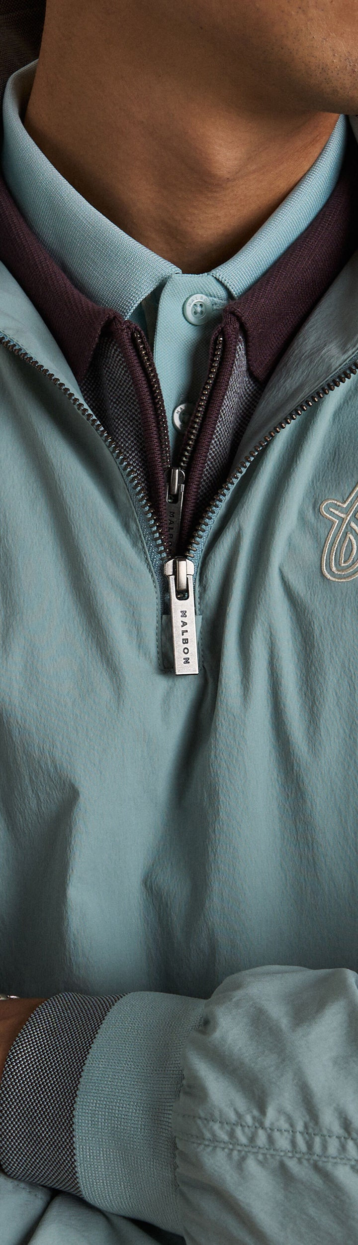 - Embroidered Malbon script logo across back