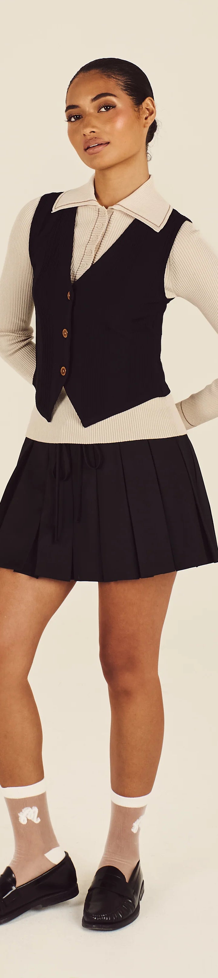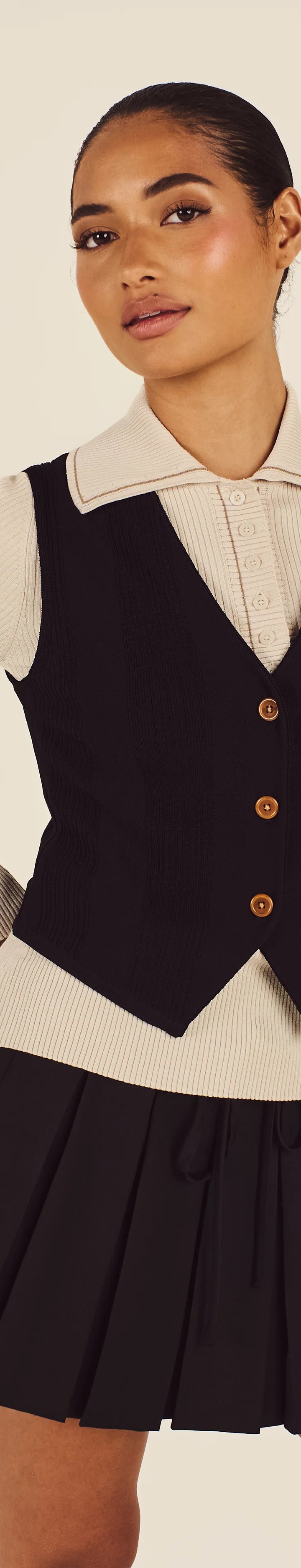 Our Edith Knit Vest blends traditional tailoring with contemporary ease. Designed with a waistcoat-inspired fit, this classic features a V-neckline and engraved button closure for a polished finish. Layer or wear solo, it works either way.