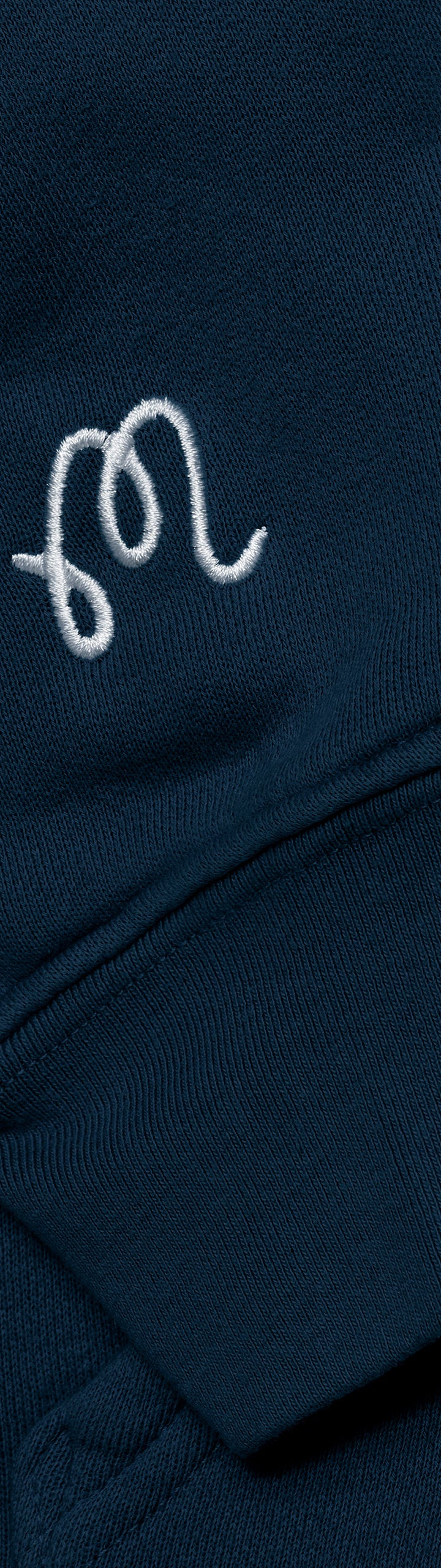- M Script embroidered on right cuff