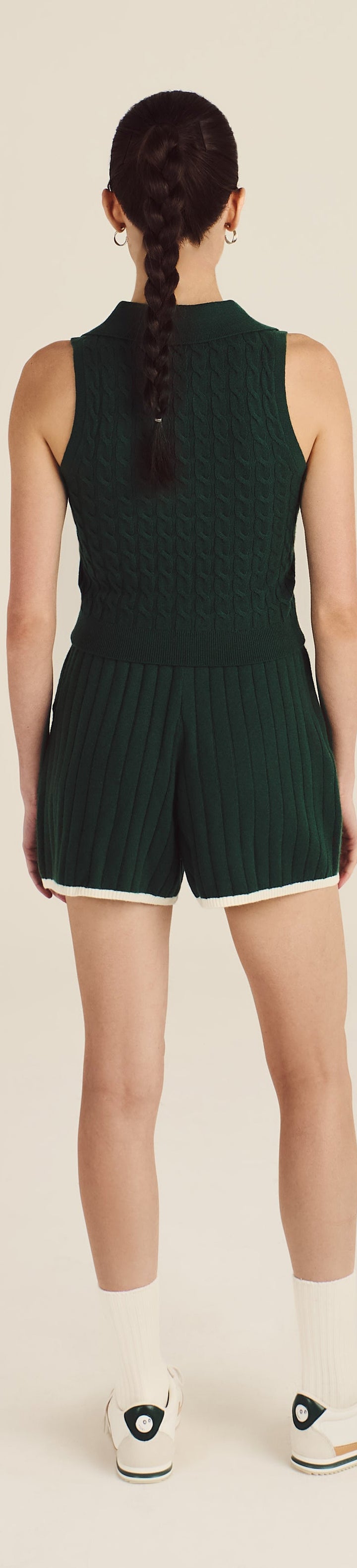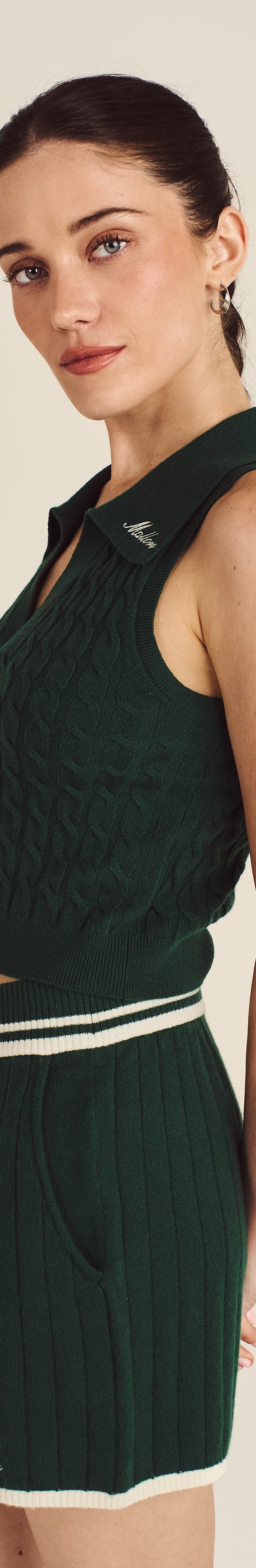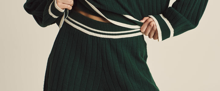 Wool and cashmere make our Freya Sweater Vest a luxurious staple, warm without feeling heavy and classic without feeling old fashioned. Details include a contrasting knit collar and cursive embroidery, a subtle through line for the collection.