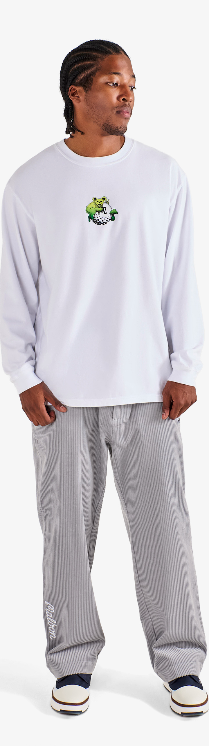 Featuring the band's signature Steal Your Face logo, our Grateful Dead Corduroy Pants are an essential this season—for golfers, Deadheads, or anyone appreciating quality design. Made of cotton, they have a classic straight leg cut that suits any occasion.