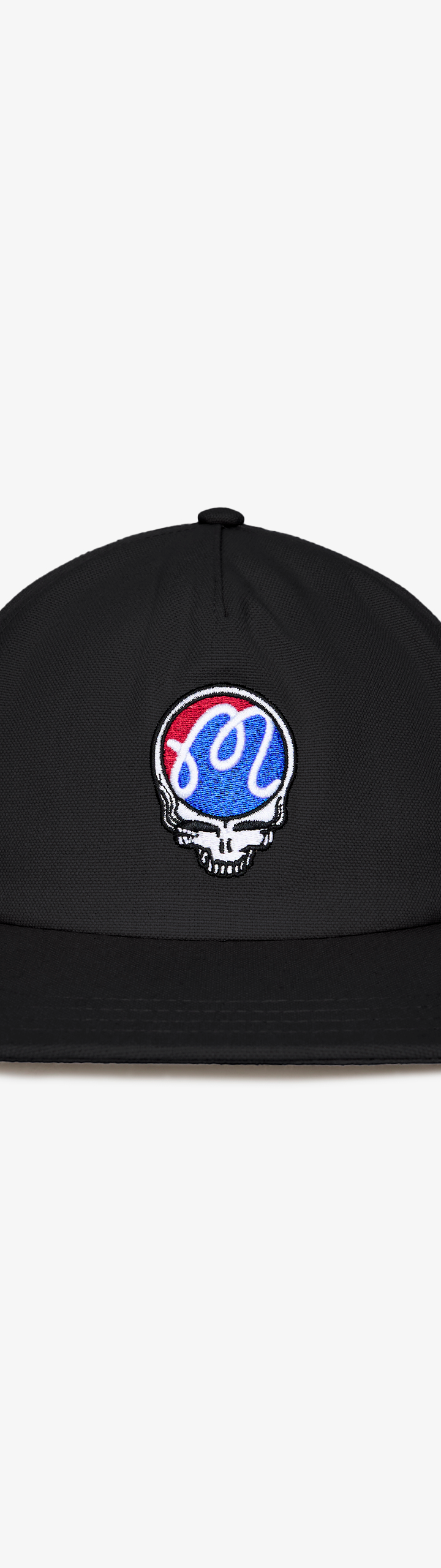 The flat brim and six panel construction give this Grateful Dead Stealie Snapback a classic shape, while the cotton canvas build offers durable comfort.