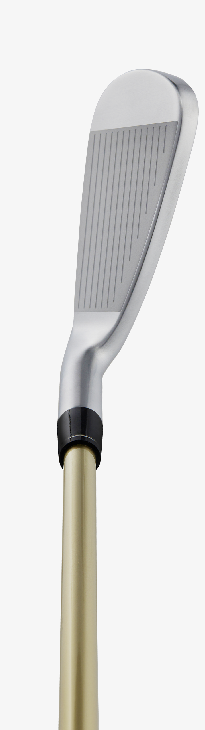 For the irons, tungsten weights and vibration-absorbing resin create solid, refined feel, while the L-cup face ignites velocity across a generous rebound zone. A low center of gravity launches towering shots even with strong lofts, with forgiveness built into every strike.