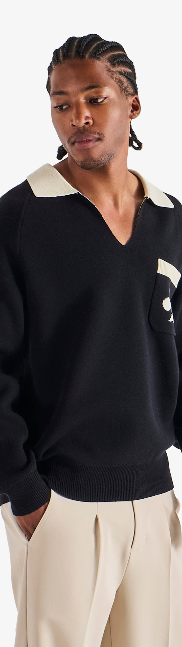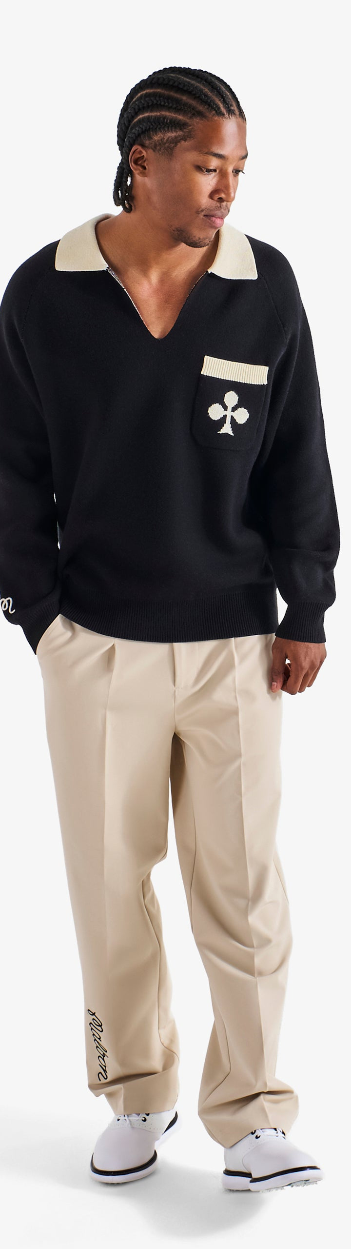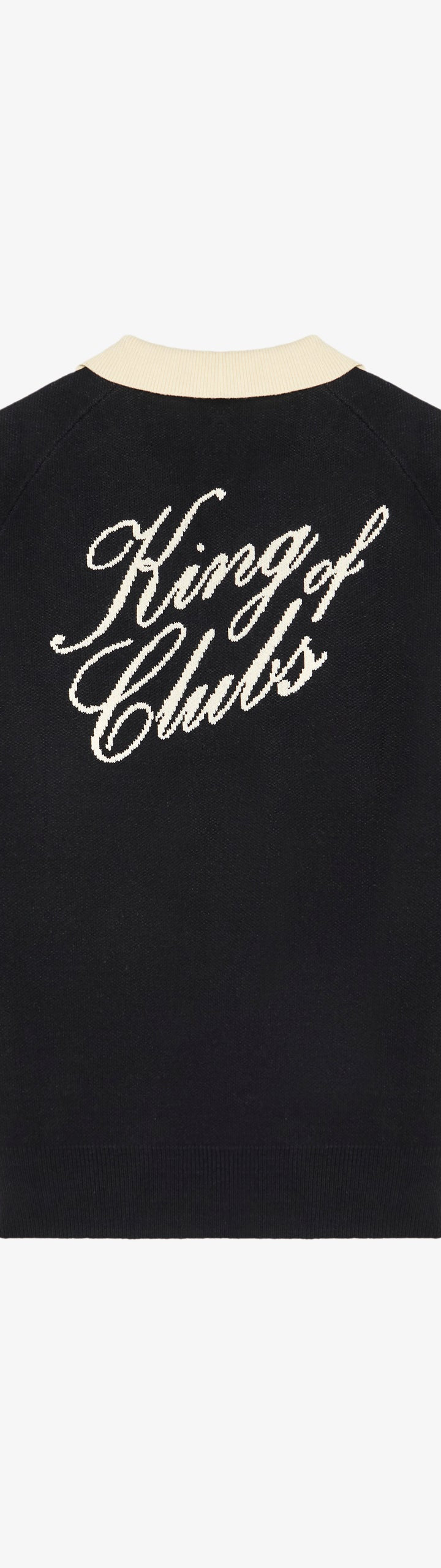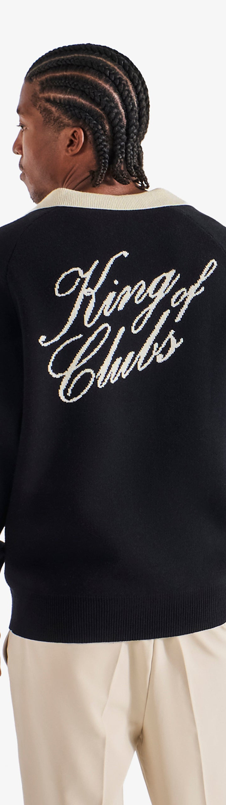 Crafted from a soft cotton blend, the King of Clubs Sweater features a ribbed trim and collared V-neckline for a timeless fit. The standout detail is the intricate intarsia design, nodding to our FW25 Collection.