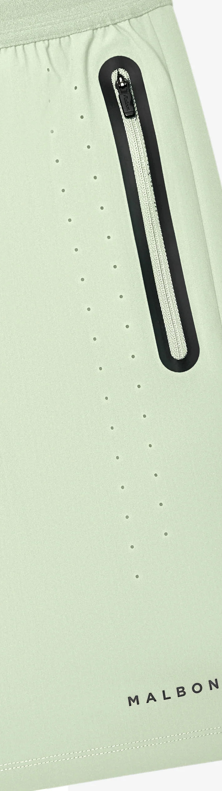 Part of Malbon's Performance collection, the 2-1 Shorts feature strategically integrated perforated panels to allow for optimal air flow and breathability. Other features include an elastic waist, interior compression shorts, and multiple zipper pockets offering functionality for enhanced performance.