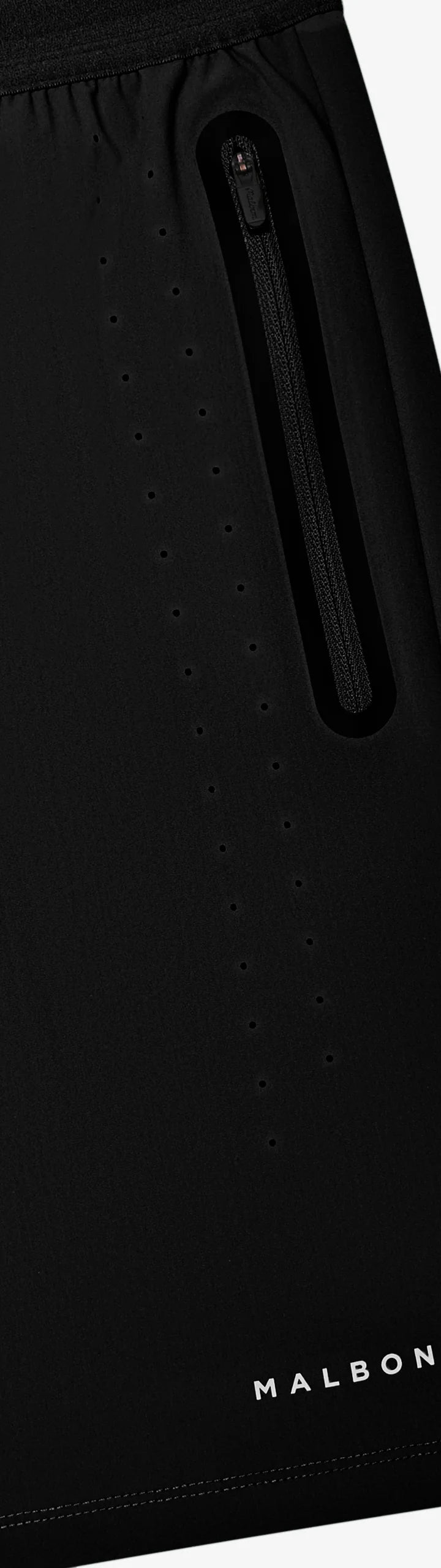 Part of Malbon's Performance collection, the 2-1 Shorts feature strategically integrated perforated panels to allow for optimal air flow and breathability. Other features include an elastic waist, interior compression shorts, and multiple zipper pockets offering functionality for enhanced performance.
