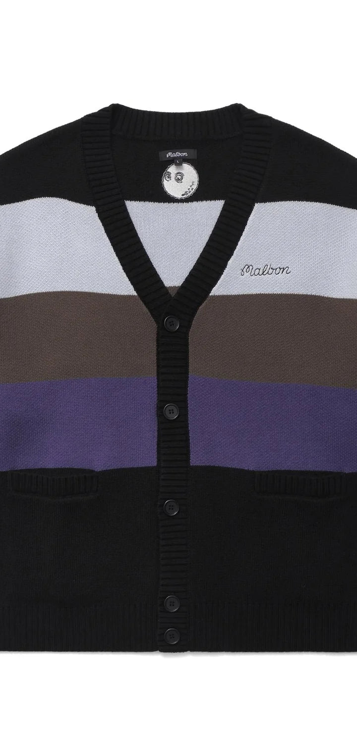 Crafted from a soft cotton blend, the Fairbanks Cardigan Sweater offers both comfort and durability, making it a versatile piece for any occasion. The classic button closure on the front allows for customizable styling, while the elastic wrist cuffs ensure a snug fit and help retain warmth. Featuring convenient front pockets for easy storage and a woven label on the side for a touch of sophistication. The Malbon script embroidered on the chest and the playful Buckets character on the back add distinctive flair to this timeless piece. Whether you’re layering up for a round of golf or adding a touch of elegance to your casual look, the Fairbanks Cardigan Sweater combines style and functionality effortlessly.
