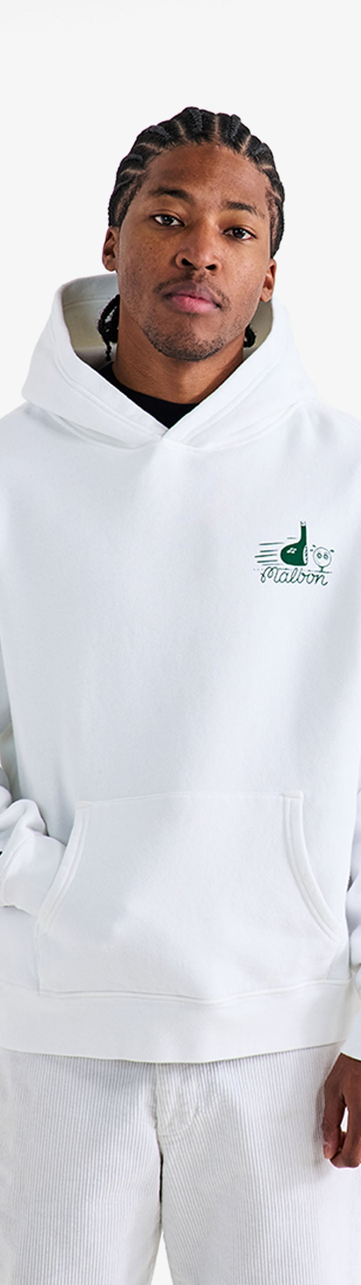 Stay warm and stylish with the Follow Thru Hoodie, a perfect blend of comfort and golf-inspired design. Crafted from 100% cotton fleece, this hoodie offers a soft, cozy feel with premium durability. The cotton rib at the hem and cuffs ensures a snug fit, while the self-lined hood adds extra comfort. Featuring a front pocket for convenience and practicality, this hoodie also showcases Malbon Golf Tips graphics on the left chest and center back, with the signature M Script embroidered on the right sleeve. Whether you're hitting the course or relaxing off-duty, this hoodie is the ideal choice.