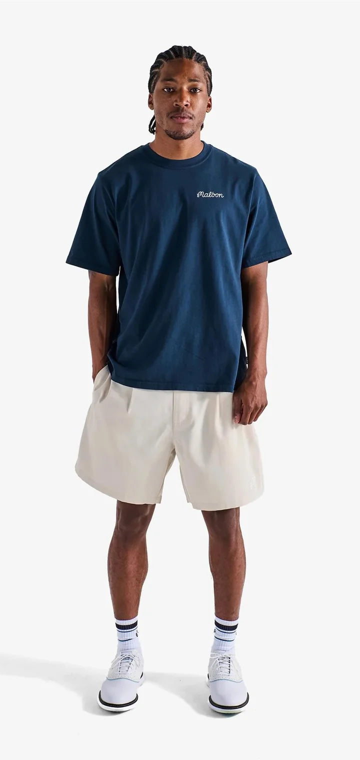 The Malbon Golf Classic Pleated Shorts in Sand offer a smart, performance-ready option for warm-weather rounds. Crafted from 100% polyester, these shorts deliver lightweight comfort and long-lasting wear. The front pleats and tailored cut provide a refined silhouette, while the multi-pocket design—including side welt pockets and dual back pockets—ensures your essentials stay secure throughout play. Finished with an engraved button at the waist, embroidered ‘M’ script logo on the front, and a woven Malbon flag label at the rear, these shorts combine timeless style with practical performance features.