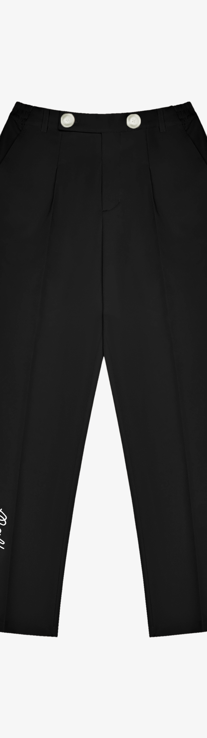 Our Oliver Pant highlights classic tailoring with performance-driven comfort. Crafted from a flexible blend of polyester and spandex, it features classic front pleating and a relaxed straight-leg cut for ease of movement. Signature Malbon embroidery and horn buttons finish it off.
