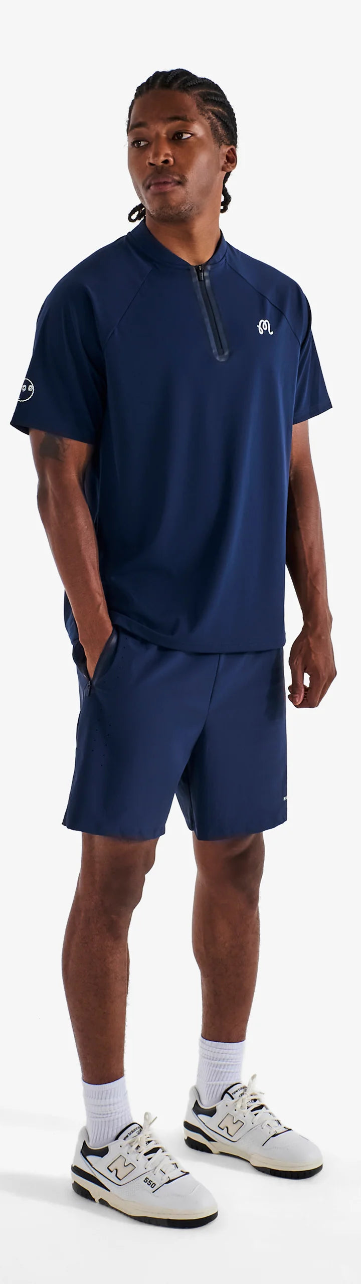 Part of Malbon's Performance collection, the 2-1 Shorts feature strategically integrated perforated panels to allow for optimal air flow and breathability. Other features include an elastic waist, interior compression shorts, and multiple zipper pockets offering functionality for enhanced performance.