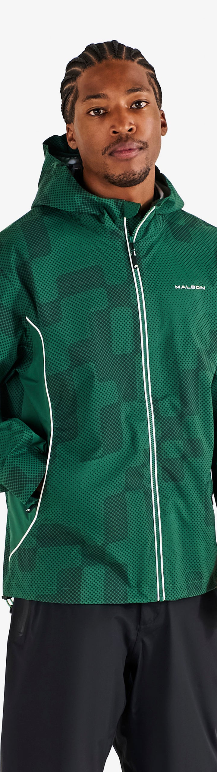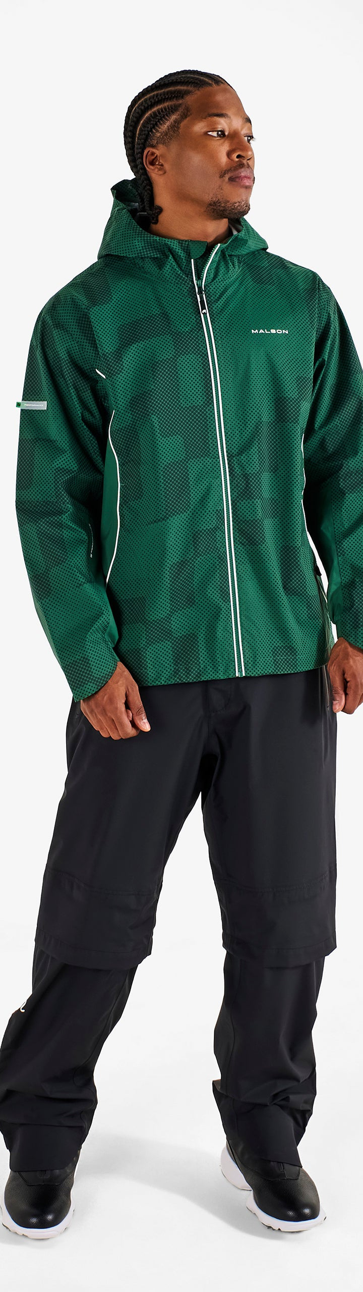 Showcasing a subtle all-over print, our Performance Full Zip Rain Jacket is stacked with features. Designed with elastic cording at the hood and waist, it's built for a truly customizable fit.