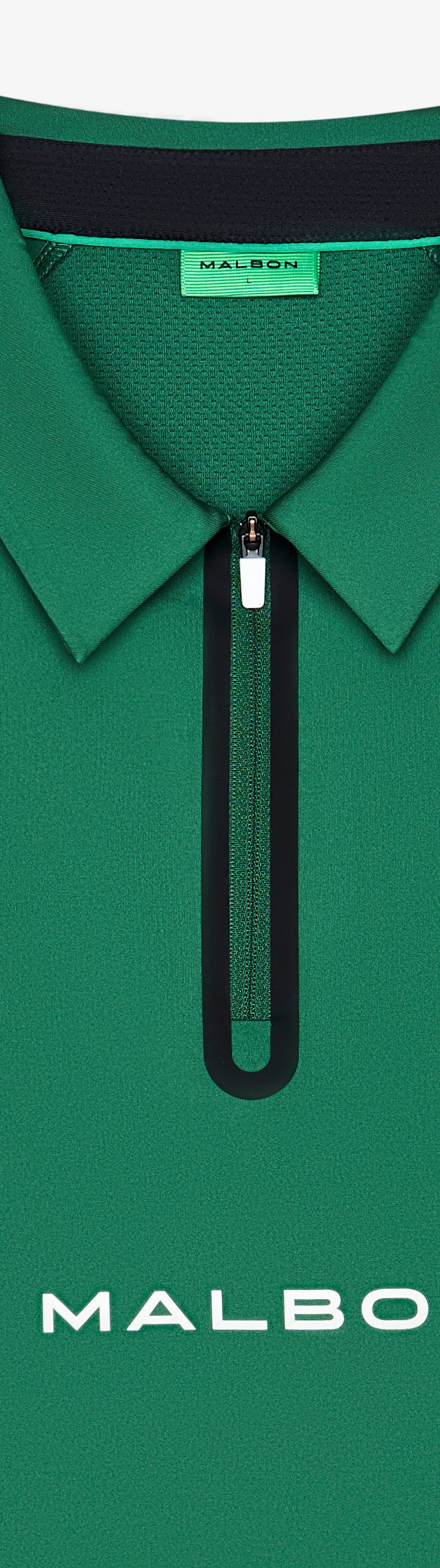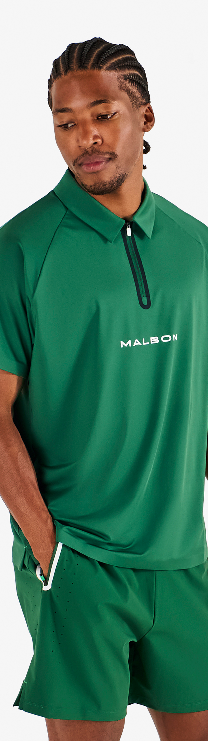 Part of our Performance line, this polo has a classic zip collar, raglan sleeves, and a perfectly relaxed fit. It also features mesh panels for increased breathability, always a plus on the course.