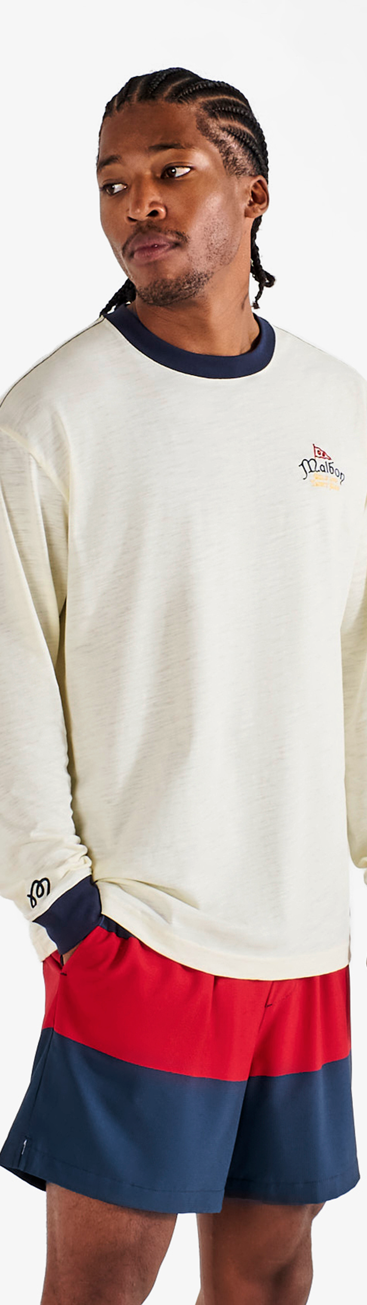 - Embroidered M script logo on right cuff