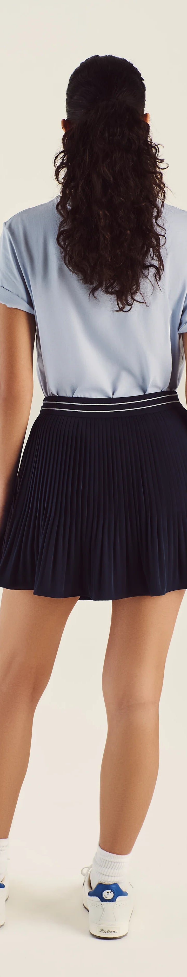 Made with a breathable, stretch polyester blend, the Valentina Skirt is an ideal addition to the golfer's wardrobe. Designed with interior shorts, they feature a classic a-line silhouette with jacquard taping in contrast knit.