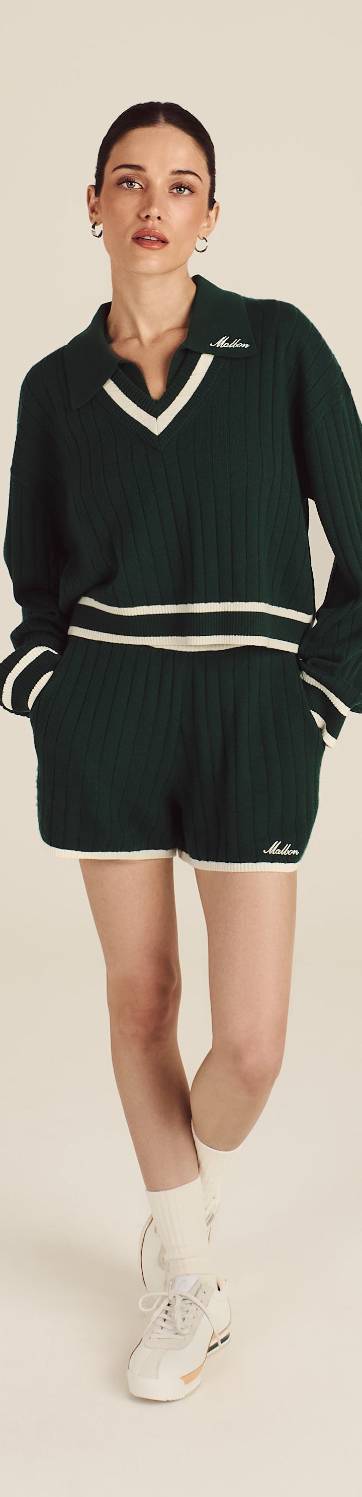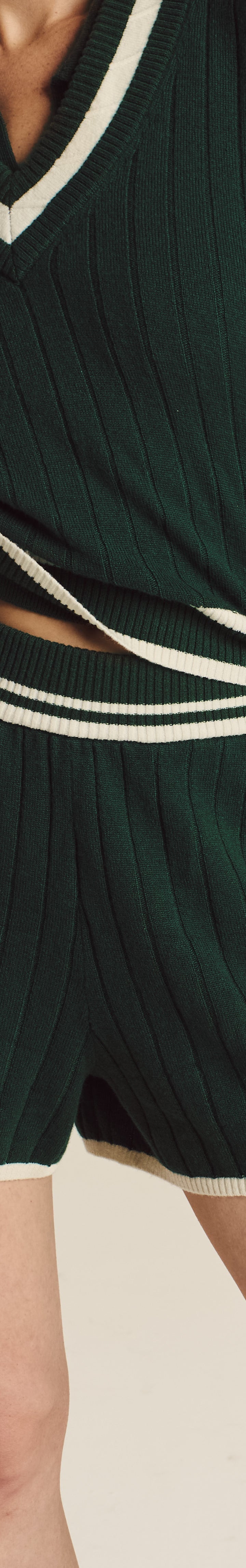 Made from a lightweight wool-cashmere, our Willow Short has a great hand feel—soft, breathable, and elevated. Ribbed striped trim gives it a classic touch and it's the perfect match for the Willow Sweater.