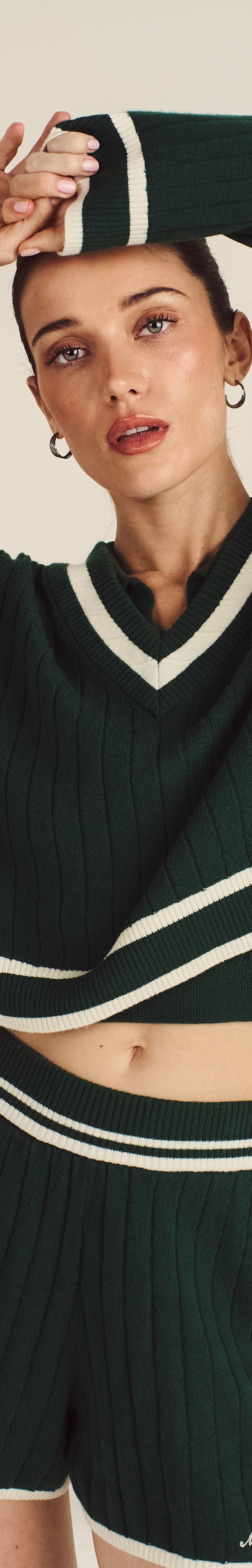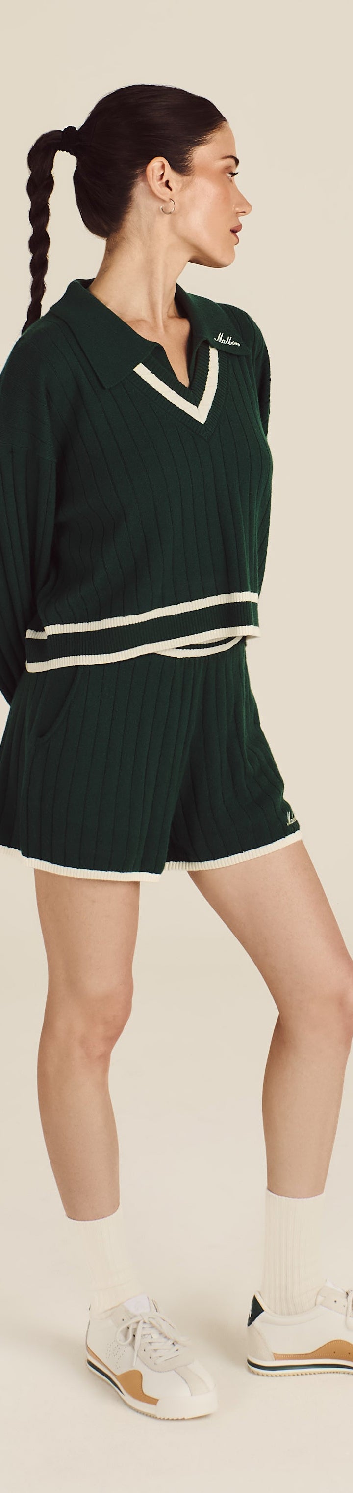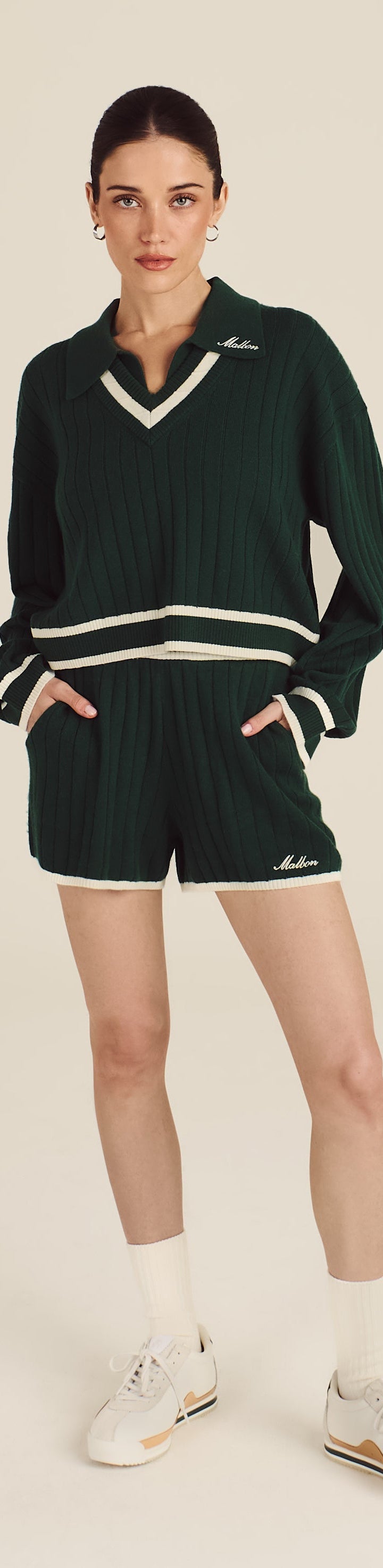 Spun from a lightweight blend of wool and cashmere, our Willow Sweater is soft and luxe enough for any season. The relaxed v-neck silhouette makes it effortlessly wearable, while this season’s crest embroidery ties it back to our Fall ’25 story. Pair with the matching shorts and go with the set.